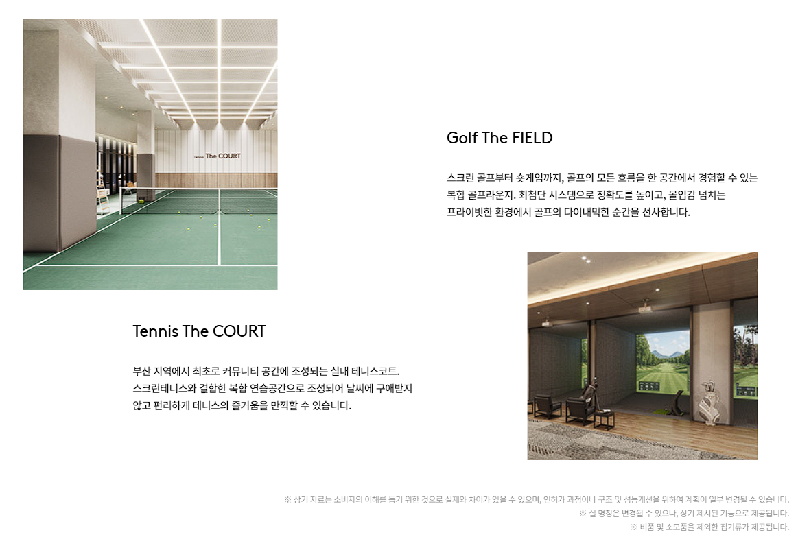 - 스크린 골프장 & 테니스장: 실내 시뮬레이터 시설