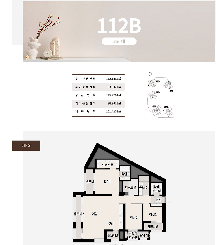 남천써밋은 단순히 크기만 다양한 것이 아니라, 각 타입별로 구조와 공간 구성에 차별화된 설계가 적용되어 있다는 점이 인상적이었어요. 실거주 중심의 평면(84A, 112A, 122A)부터 하이엔드 주거를 겨냥한 펜트하우스(243㎡)까지 선택의 폭이 매우 넓습니다.
