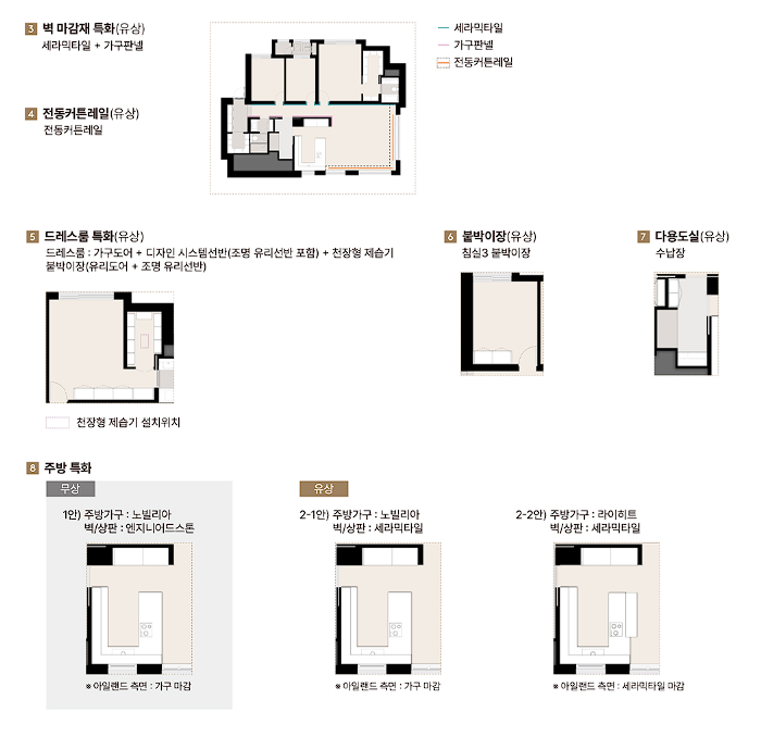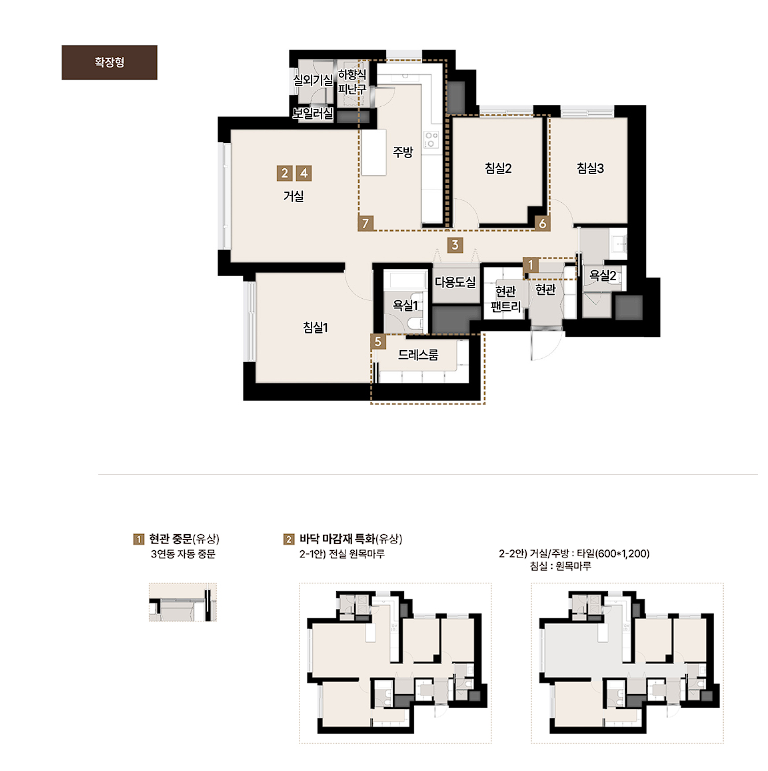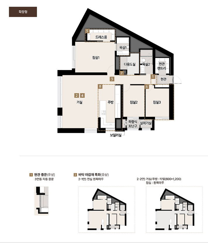 - 안방 전용 드레스룸, 욕실, 파우더룸 세분화