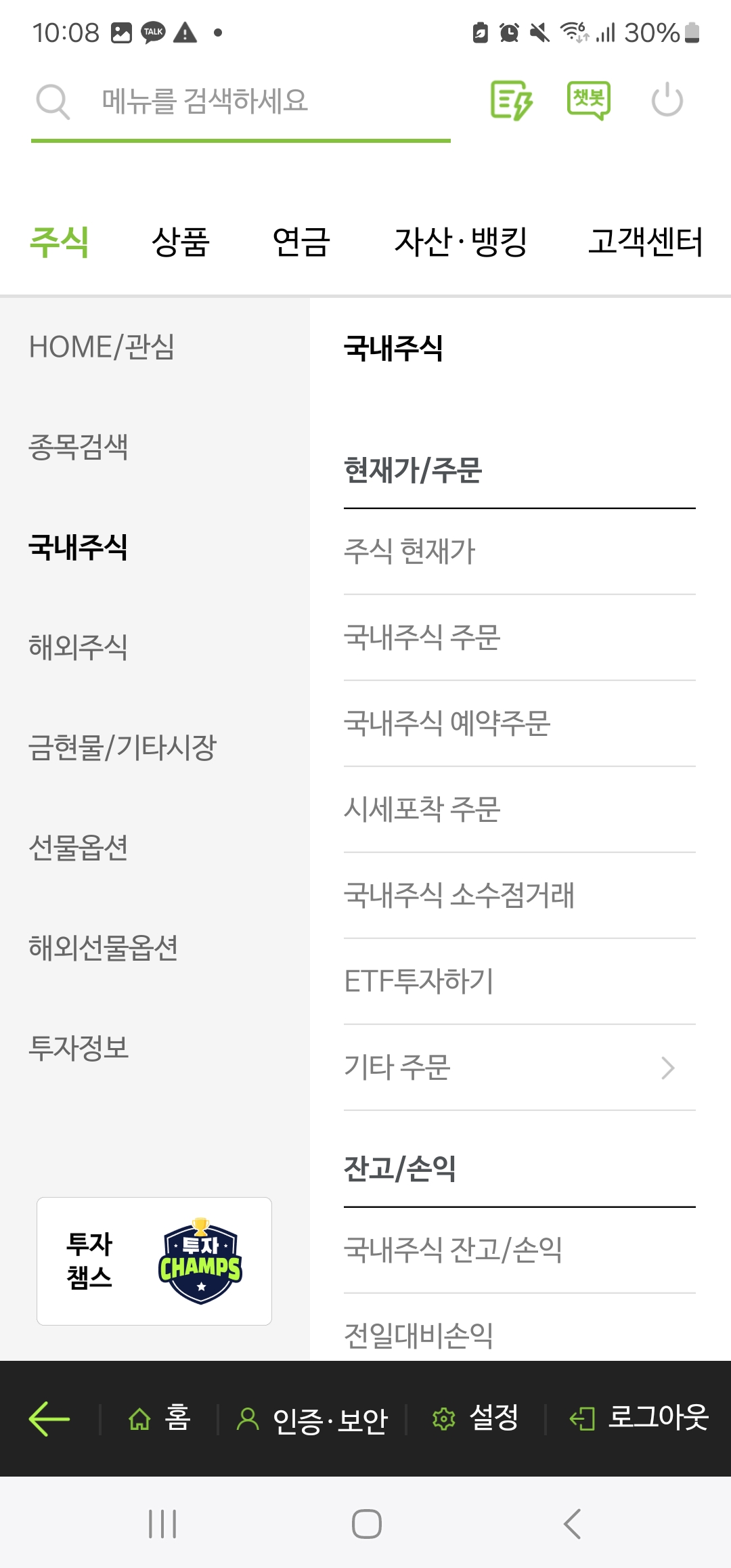 - [국내주식] 탭에서 ‘국내주식 예약주문’ 선택
